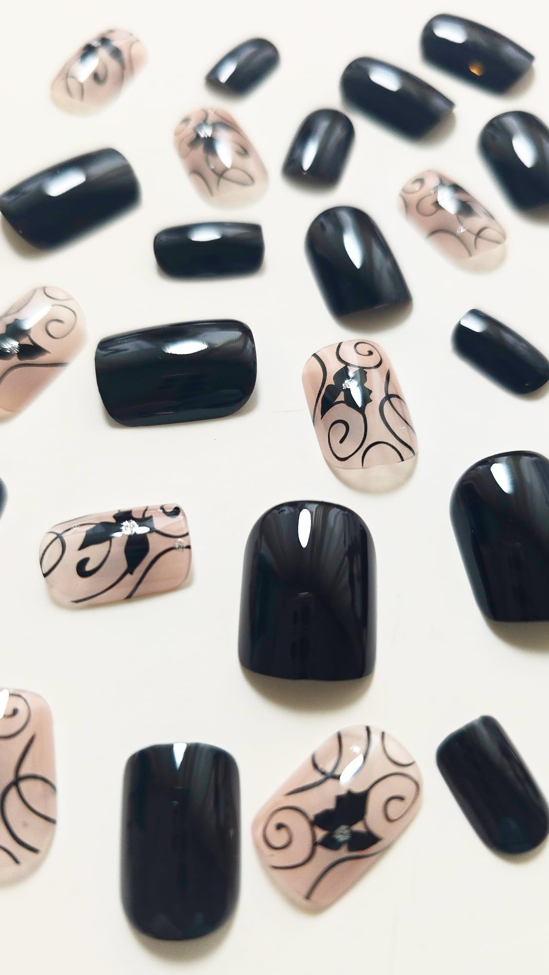 As Velv Nail Press-On vêm com 20 a 24 unhas (diversos tamanhos) e todos os essenciais para utilizá-las: lixa, palito e adesivos.