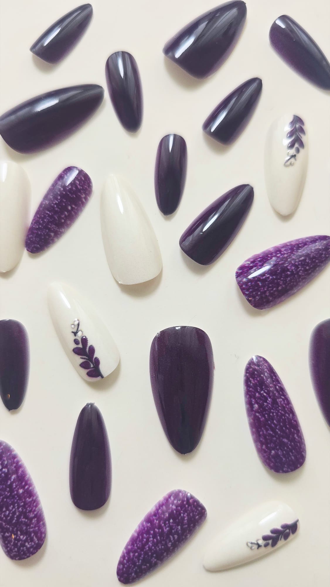As Velv Nail Press-On vêm com 20 a 24 unhas (diversos tamanhos) e todos os essenciais para utilizá-las: lixa, palito e adesivos.
