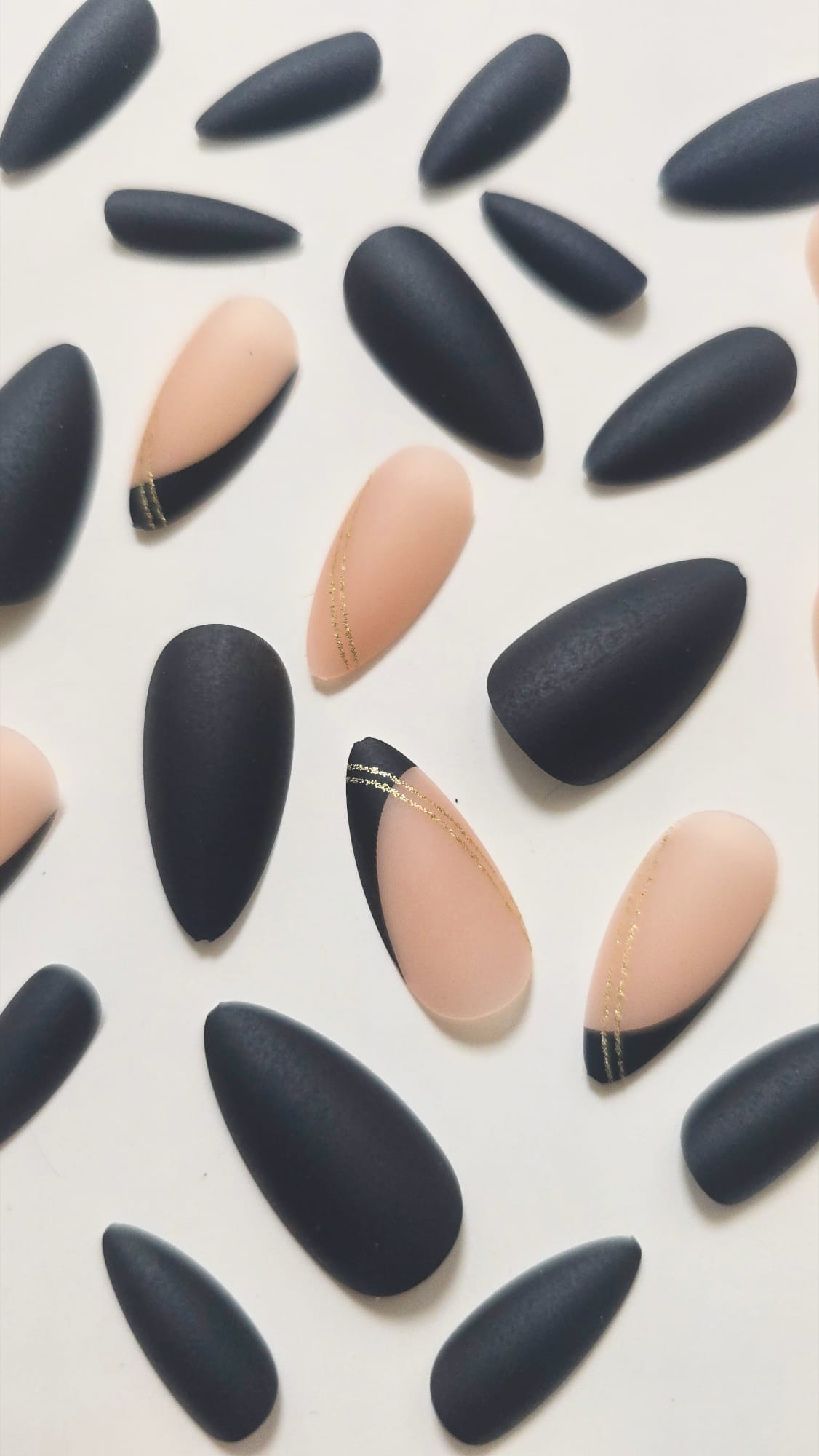 As Velv Nail Press-On vêm com 20 a 24 unhas (diversos tamanhos) e todos os essenciais para utilizá-las: lixa, palito e adesivos.
